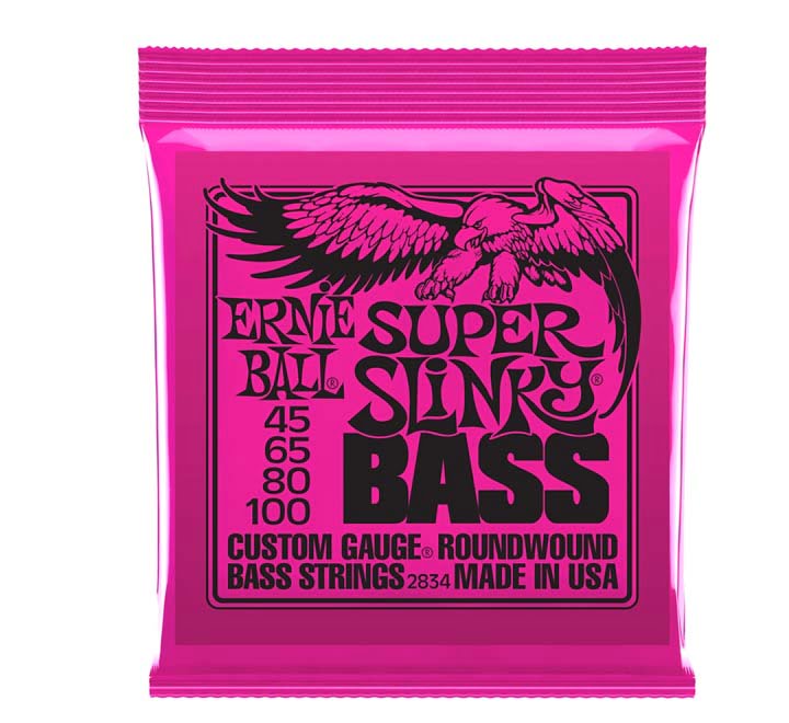 Ernie Ball 2834 Super Slinky sono delle corde da basso elettrico con scalatura .045, .065, .080, .100, sono avvolte così da creare un suono brillante e bilanciato.
