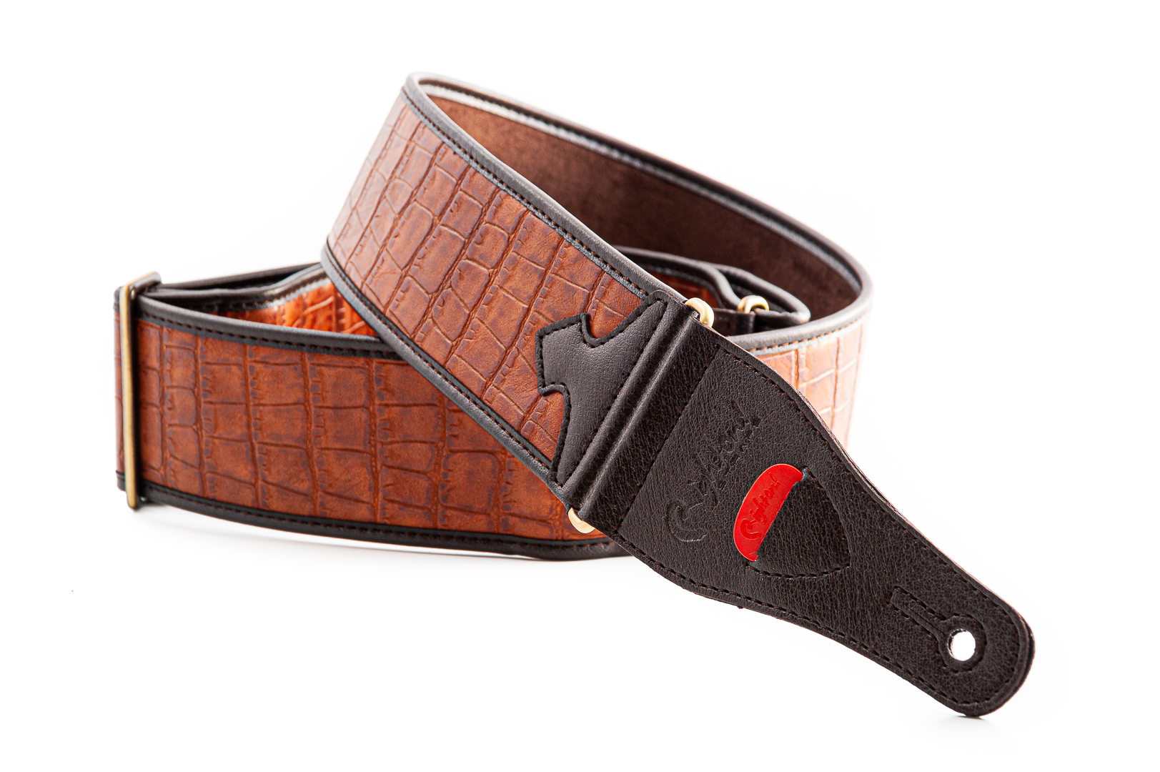 RightOn Alligator Light Brown è una tracolla per chitarra realizzata in similpelle, che imita la texture della pelle di alligatore. Con questa tracolla, possiamo cantare quella famosa frase… “See You Later Alligator… tan tan tan tan… after ‘while crocodile”.