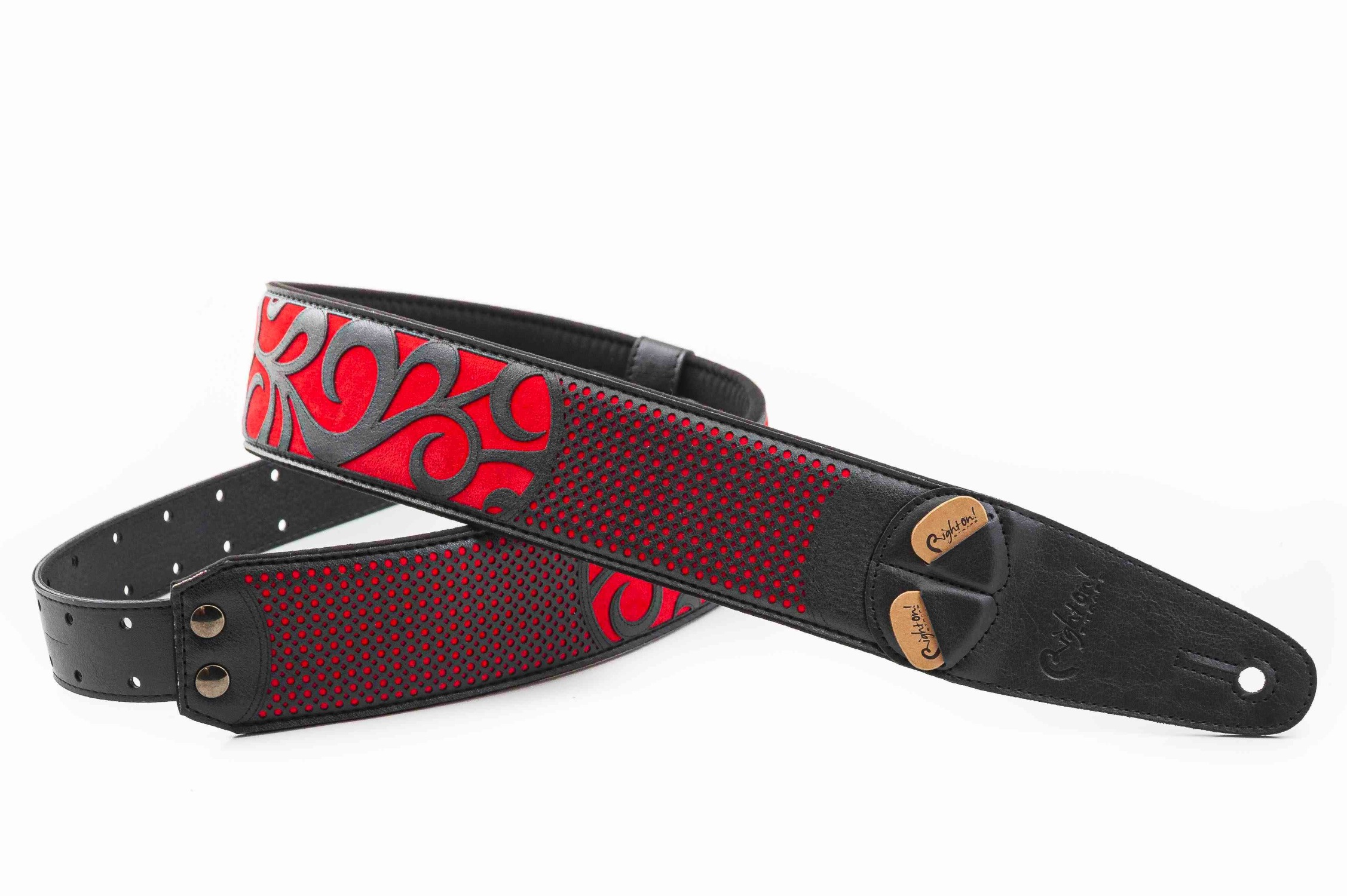 RightOn Nashville Red è una tracolla per chitarra che ha una superficie che ricorda incisioni vintage, stivali da cowboy e l’autentico spirito del blues e del rock di Nashville.