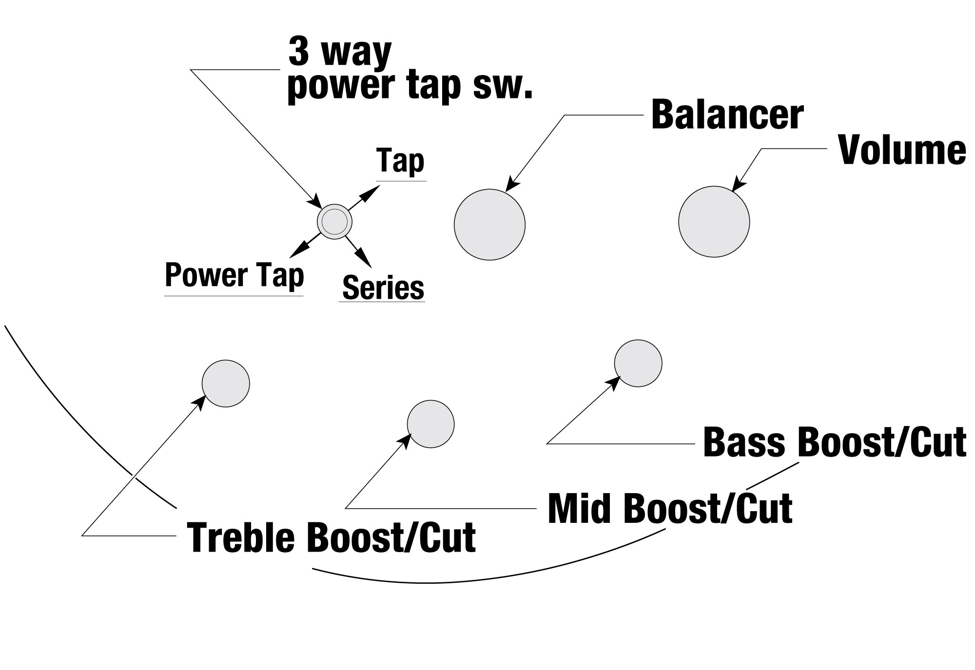 -Equalizzatore: Ibanez Custom Electronics, EQ a 3 bande con selettore Power Tap a 3 vie