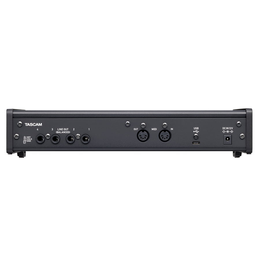Fornisce quattro ingressi microfono / linea, due dei quali possono essere utilizzati in alternativa per l’ingresso diretto di una chitarra o di un basso, quattro uscite di linea bilanciate, due connettori per cuffie e I / O MIDI al tuo computer Windows o Mac o al tuo iPhone o iPad * .